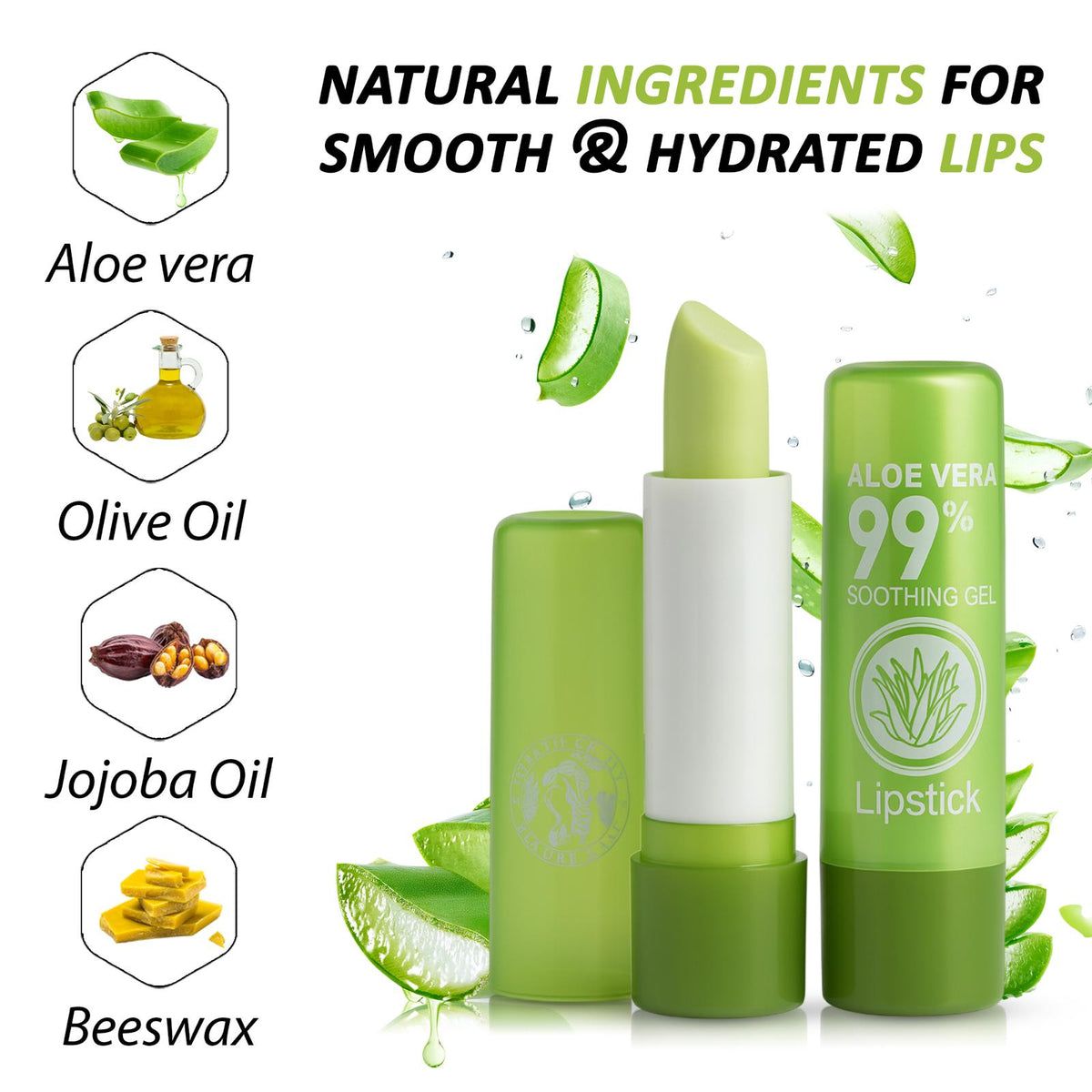 Keep your lips soft and smooth with our Aloe Vera 99% Soothing Lip Balm. This natural formula repairs dry, cracked, and chapped lips. Infused with pure Aloe Vera, Jojoba Oil, Olive Oil, and Beeswax, it delivers long-lasting moisture. The lightweight, non-sticky texture glides effortlessly, leaving your lips naturally glossy and protected.